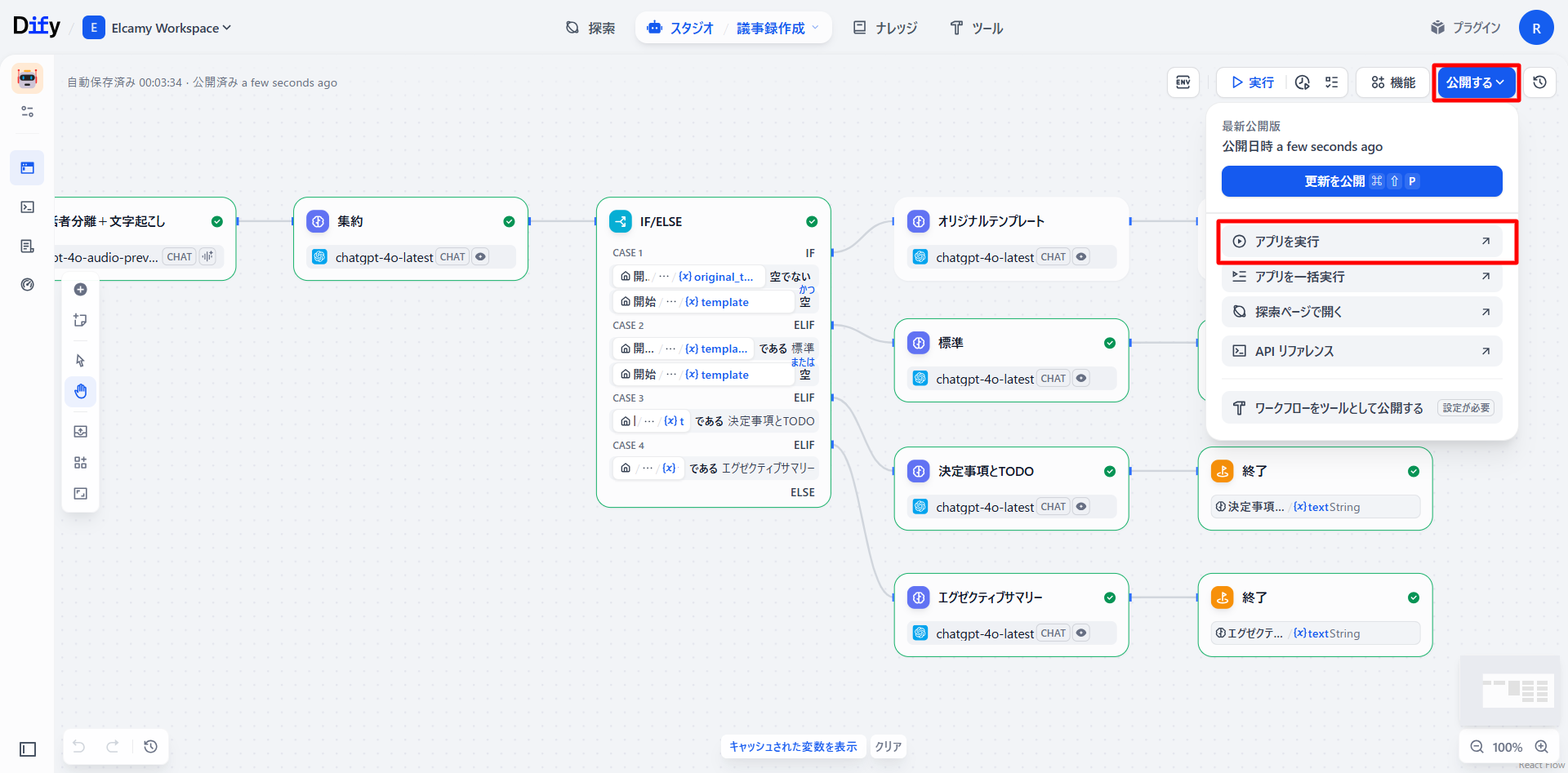 今回は、会議の音声ファイルから、テンプレートを指定して議事録を作成するワークフローを作成しました。今後もDifyを利用したアプリの作成手順を紹介していきます。ぜひ引き続きご覧下さい。