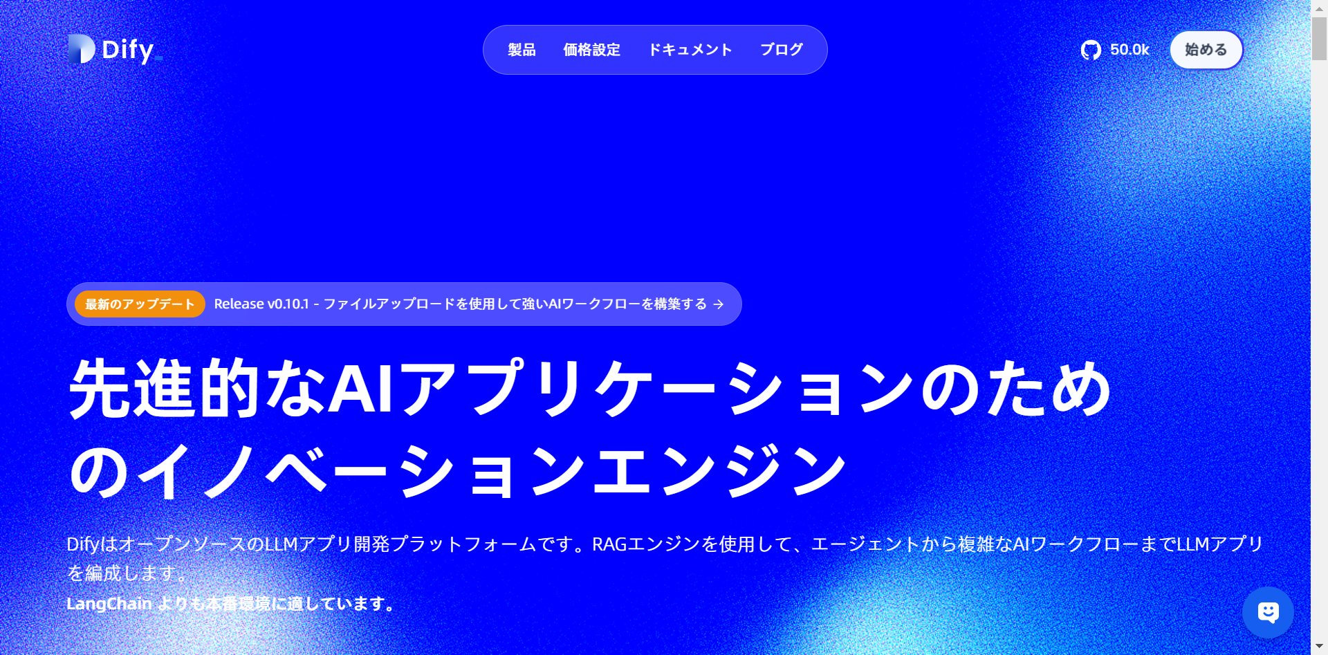 - OSS(オープンソース)のLLMアプリ開発プラットフォーム DifyはOSSであるため誰でも自分の環境で使うことができます。またOSSであるため利用者の声が開発者に届きやすくアップデートの頻度が高いのも特徴です。
