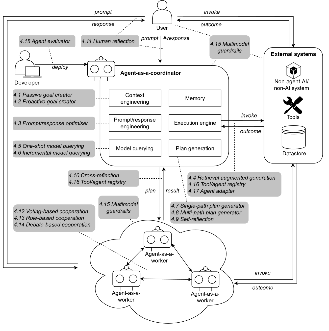 AIエージェントの設計に役立つ18のデザインパターンを紹介します。デザインパターンを活用することで、AIエージェントを構築する際の失敗を減らし、効率的な設計を行うことができます。参考論文「Agent Design Pattern Catalogue: A Collection of Architectural Patterns for Foundation Model based Agents」を基に、具体的なパターンの内容とその適用方法について解説します。