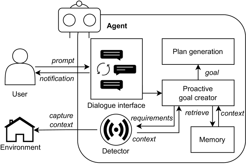 | 解決 | 検出器がマルチモーダルなコンテキスト情報(ユーザのジェスチャーなど)を収集し、ユーザーの目標を予測します。 |