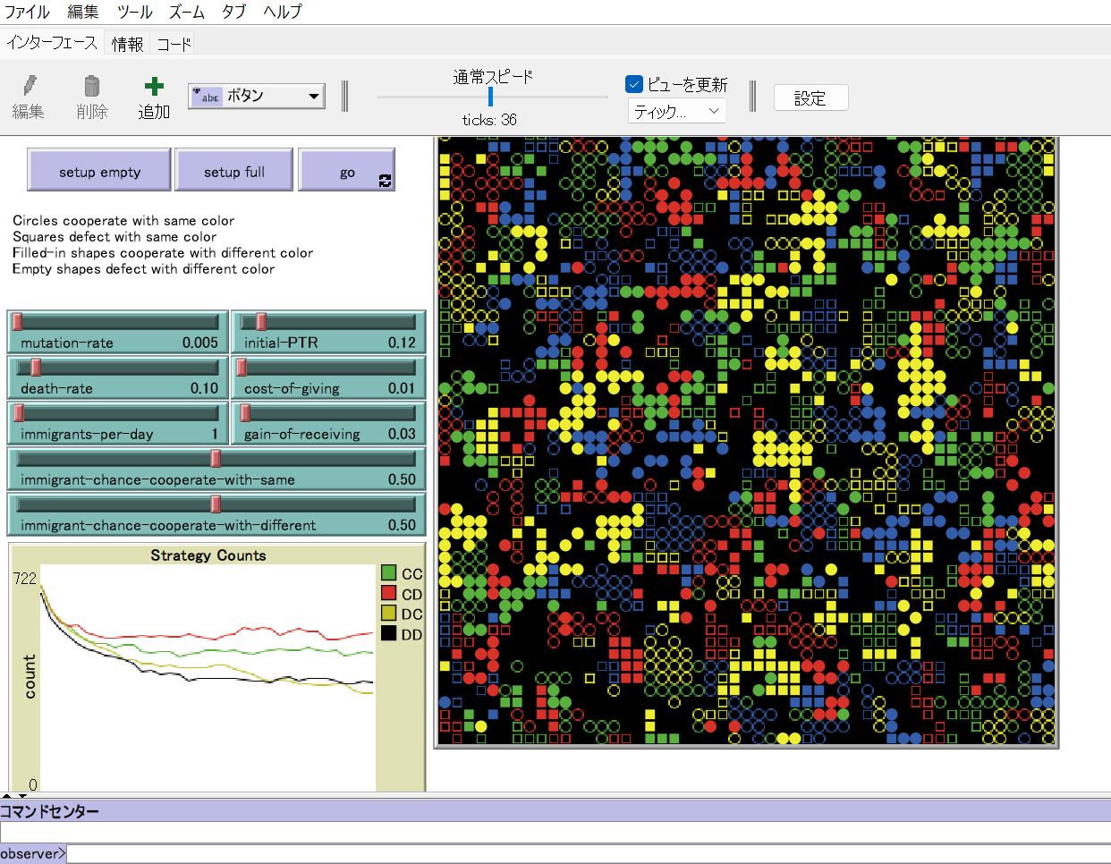 NetLogoは、社会現象や自然現象をシミュレーションするためのプログラム可能なモデリング環境です。1999年にUri Wilenskyによって開発されて以来、教育や研究分野で広く利用されています。
