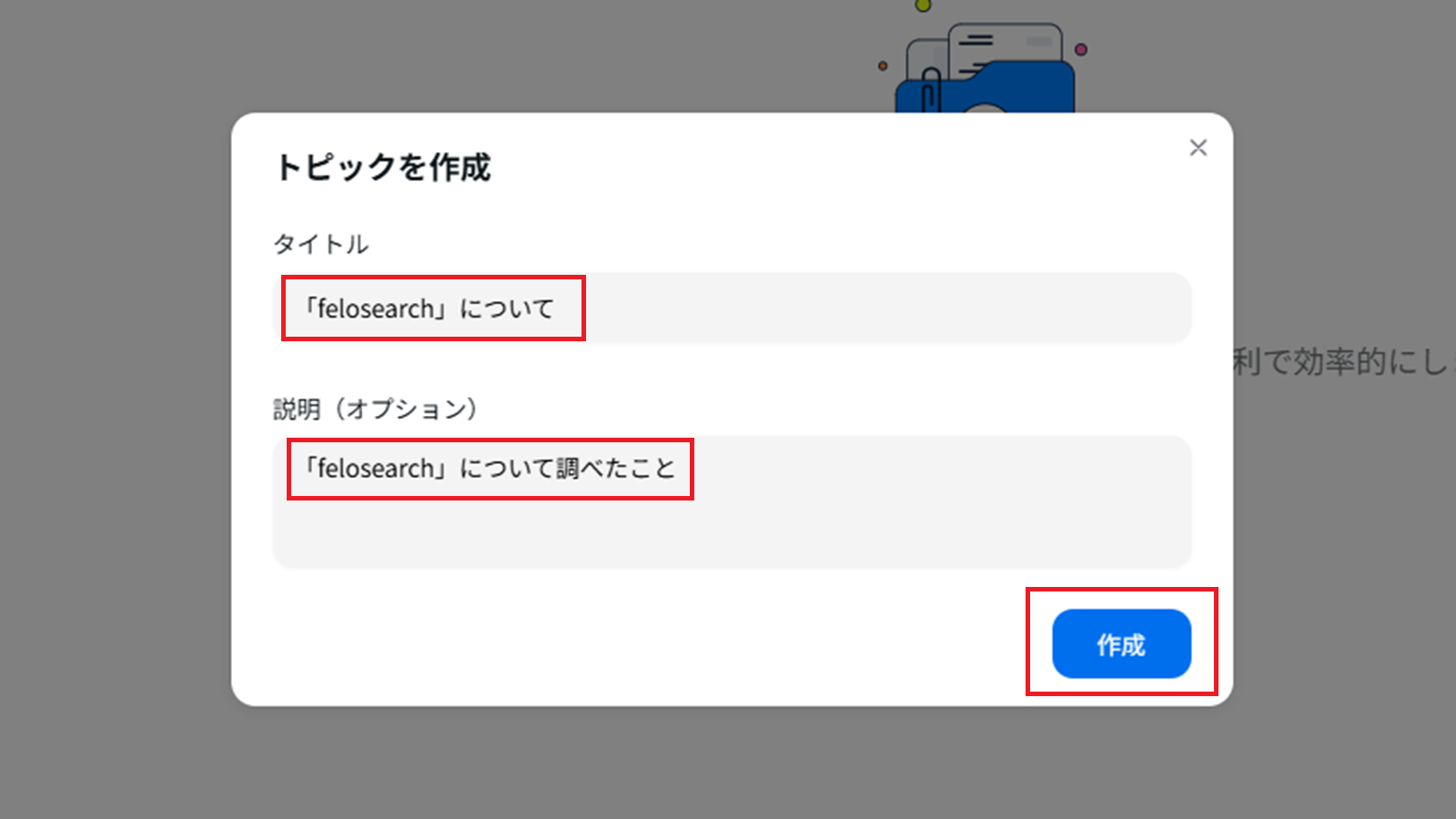 タイトルと説明(任意)を入力し、「作成」を押します。