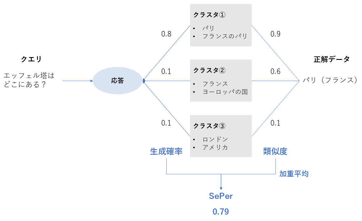 y: 生成されたテキスト。 |\mathcal{A}_y|: 抽出された事実の総数。 a: 集合 \mathcal{A}_y に含まれる個々の事実。 C: 外部知識源(Knowledge Base / Context)。 \mathbb{I}[\cdot]: 指示関数(Indicator function)。事実 a が知識源 C によって支持されている場合に 1、そうでない場合に 0 を返す。 $$ FS(y) = \frac{1}{|\mathcal{A}y|} \sum{a \in \mathcal{A}_y} \mathbb{I}[a \text{ is supported by } C] $$ ::: --- ### SePer (Semantic Perplexity) | 項目 | 内容 | | --- | --- | | 評価指標名 | SePer (Semantic Perplexity) | | 概要 | 生成された回答が、意味的に「正解のグループ」に分類される確信度を、LLMの確率分布を使って測定する。 | | 必要なデータ | ・生成回答 ・LLMの内部確率分布 ・クエリに対する正解回答 | | 指標の見方 | **高いほど良い **意味的なブレが少ないことを示す。 | | 前提 | LLMの内部状態へのアクセスが必要。 |