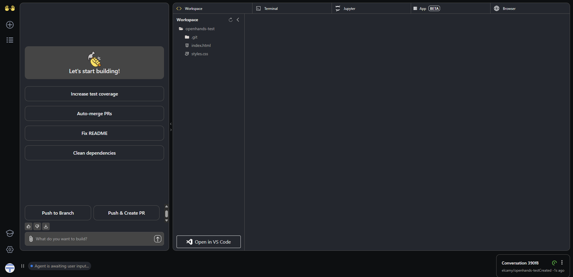ここまで読んでいただき、ありがとうございました。 次回はOpenHandsの応用的な機能を試して紹介します。