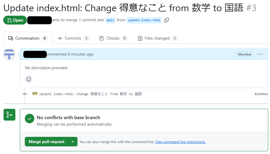 GitHub上でプルリクエストが作成されていることが確認できました。