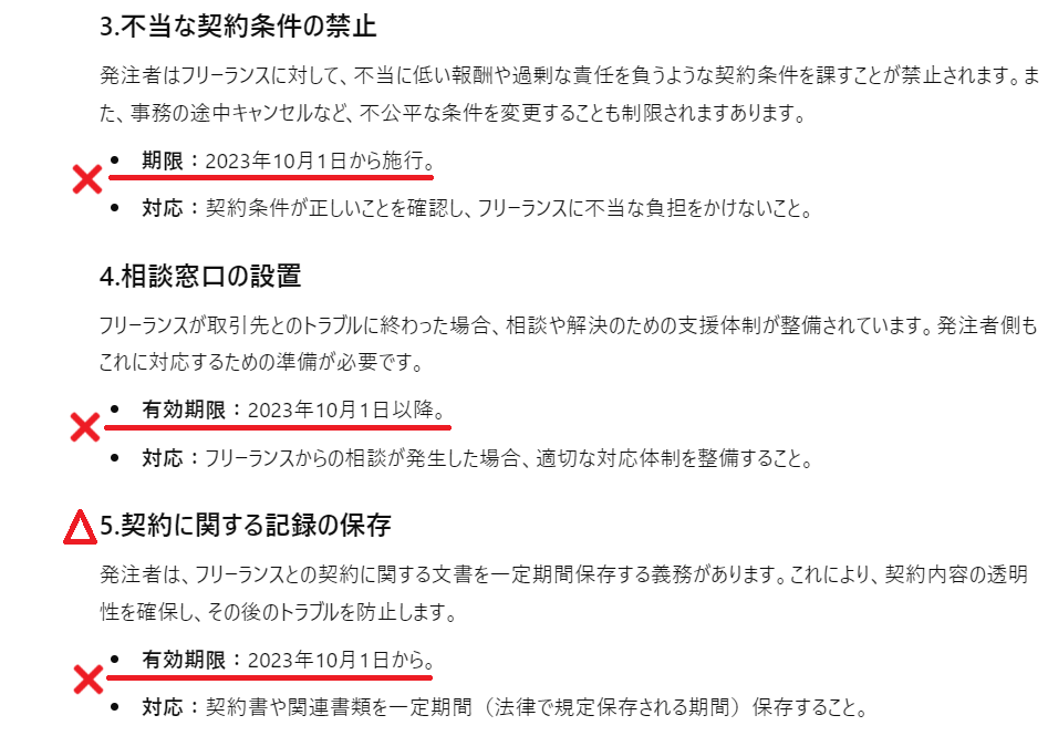 - 「契約に関する記録の保存」は法律上必要ですが、フリーランス新法によって今回新しく定められたものではありません。
