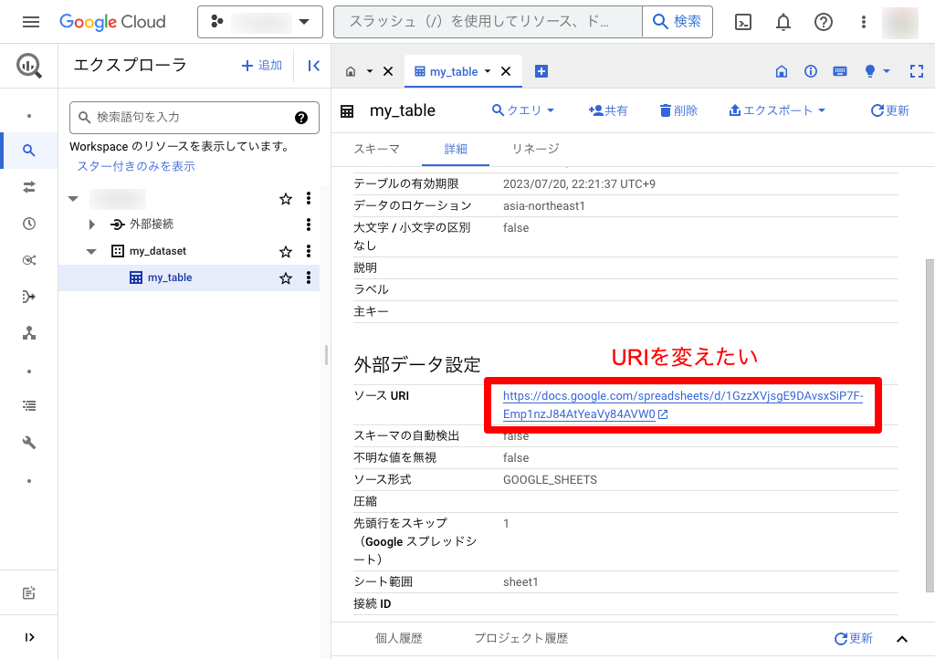 外部テーブルのURIをColaboratoryで変える