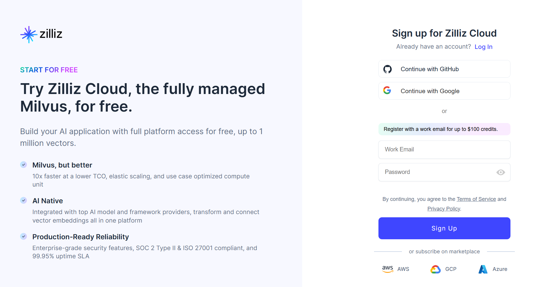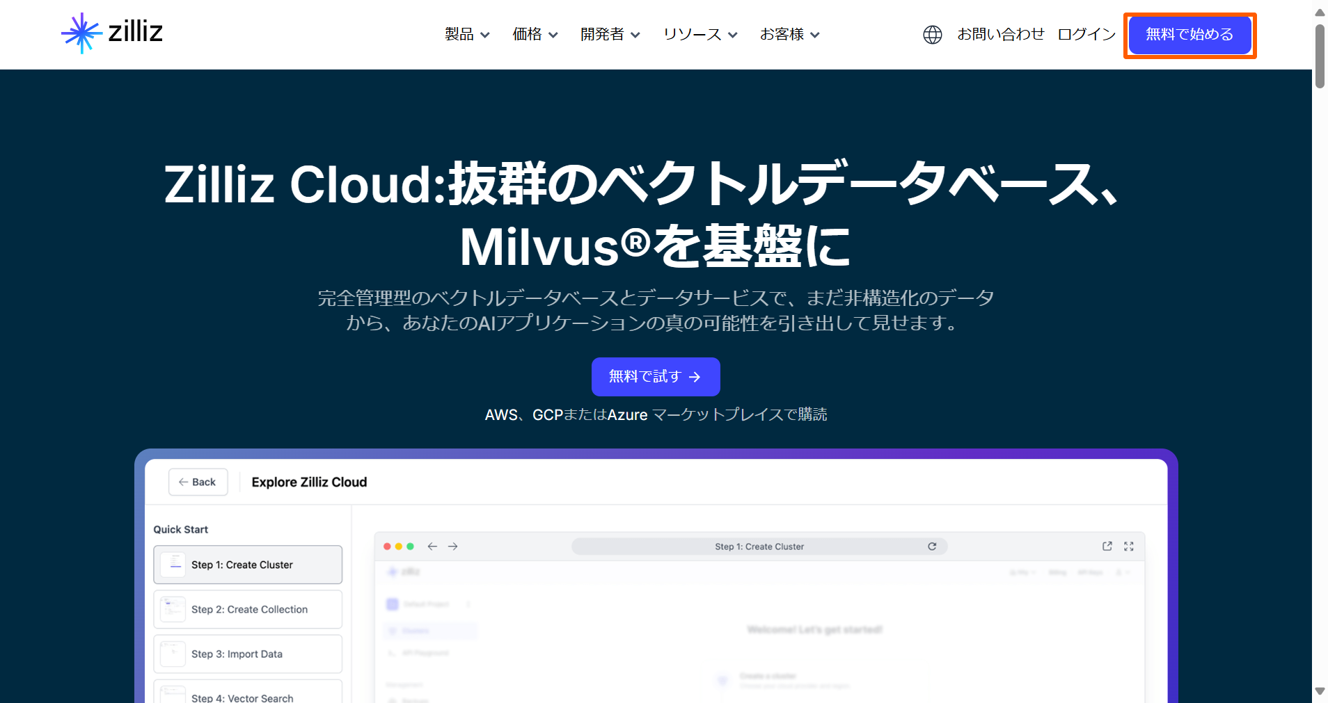 Zilliz Cloud Milvusを基盤としたクラウドサービス。