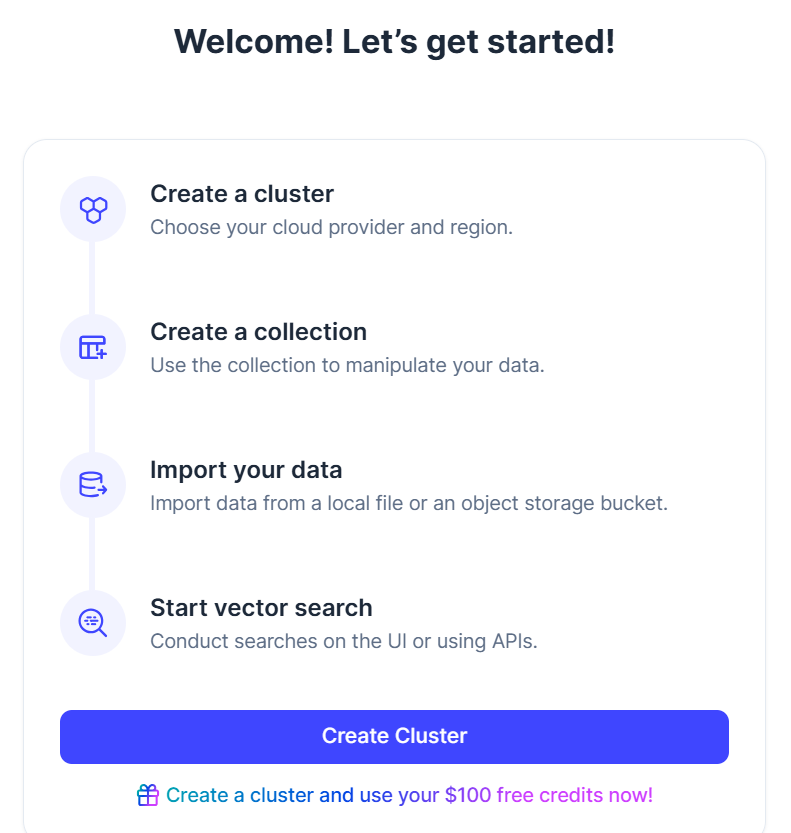 これでZilliz Cloudのセットアップは完了です。