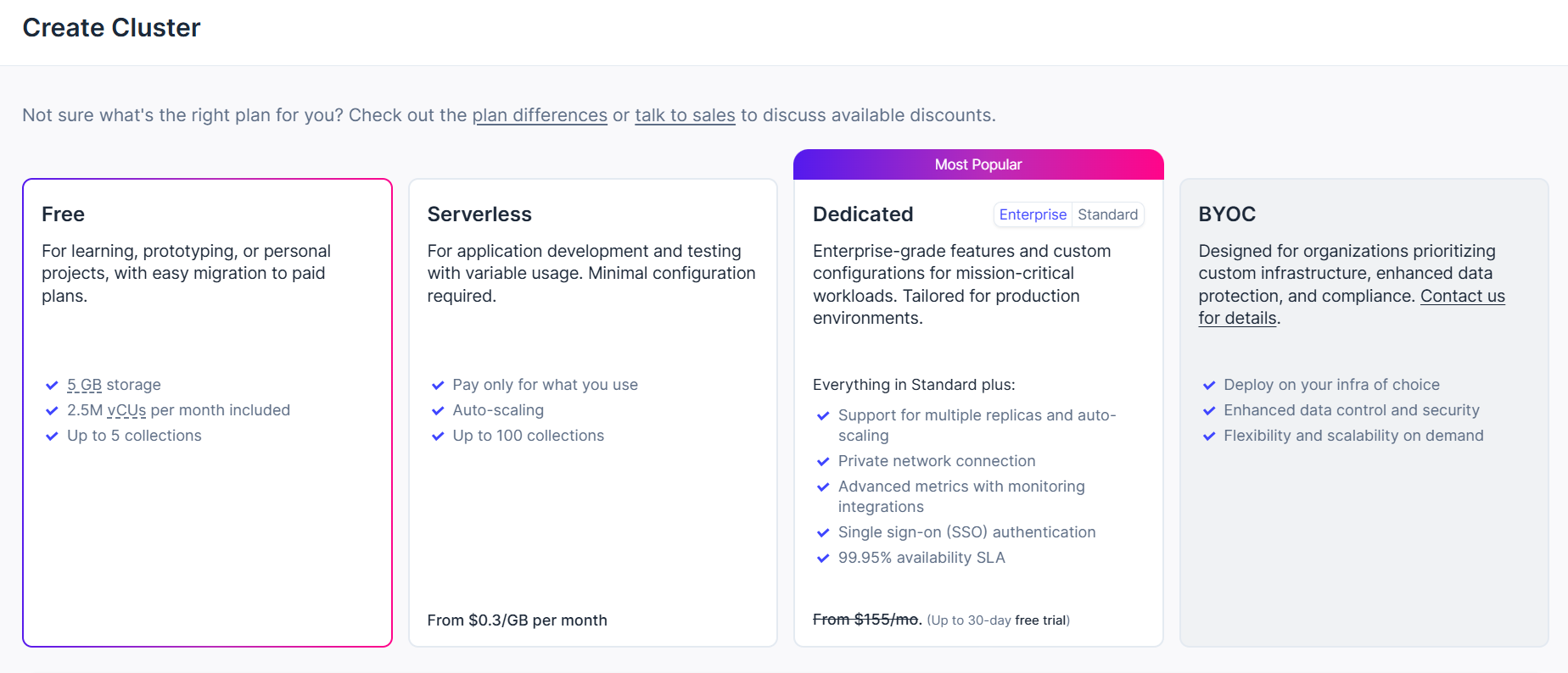 最初に、コードのベクトルデータを保存するためのデータベースを用意します。今回はZilliz Cloudの無料プランを使用します。