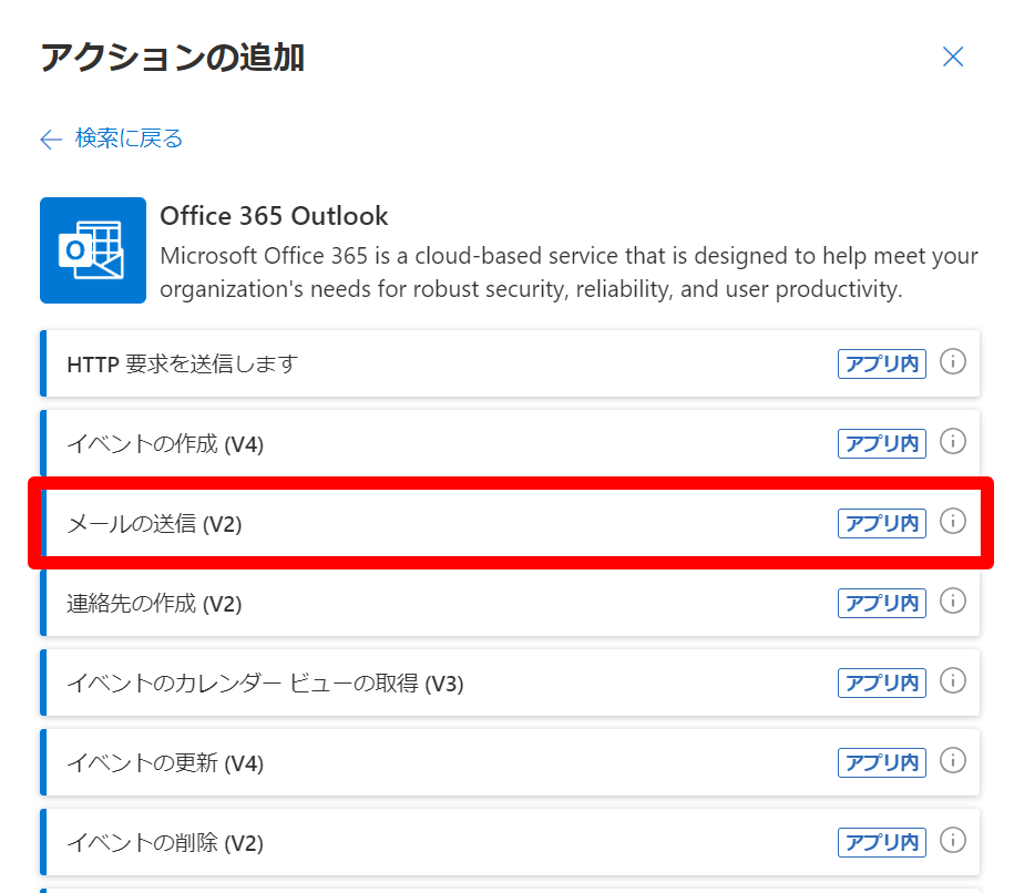 Office 365 Outlook関連のアクションの**メールの送付(V2)**を使用します。