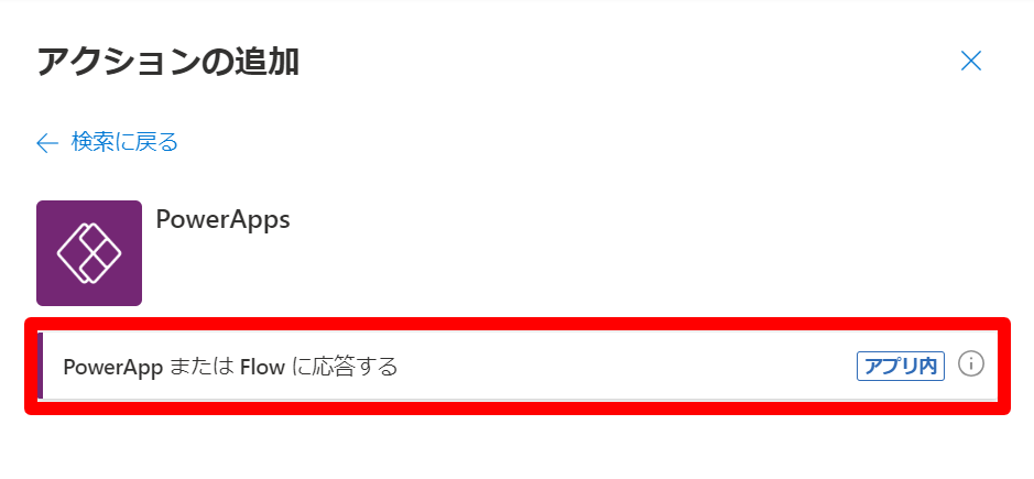 PowerAppsのアクションのPowerApp または Flowに応答するを使用します。