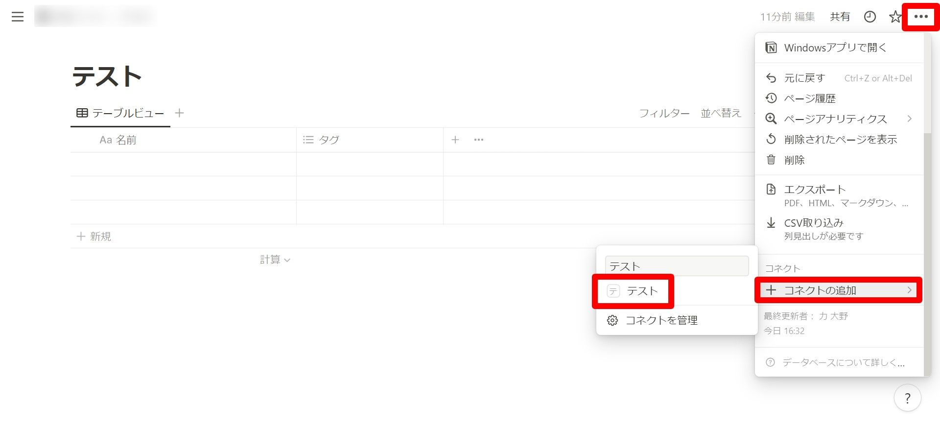 次にNotion APIからのNotionデータベースへのアクセス許可を行います。