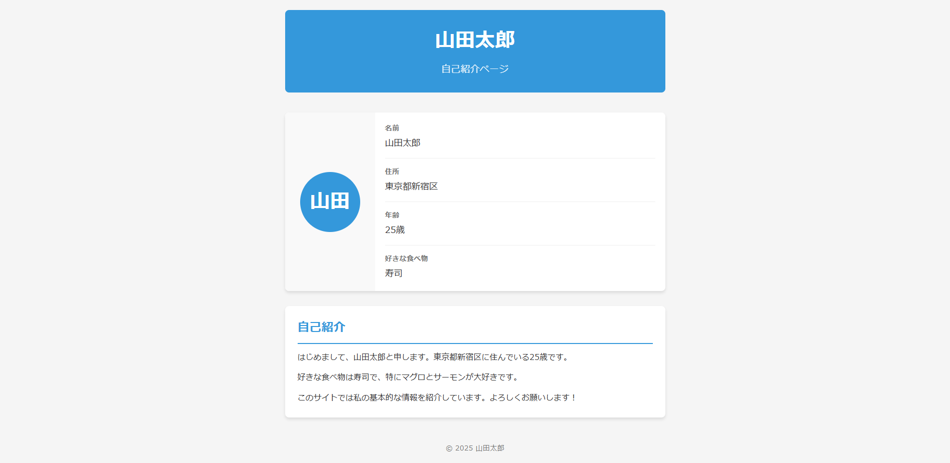 HTML/CSSを使って、個人の自己紹介用のサイトを作成してください。